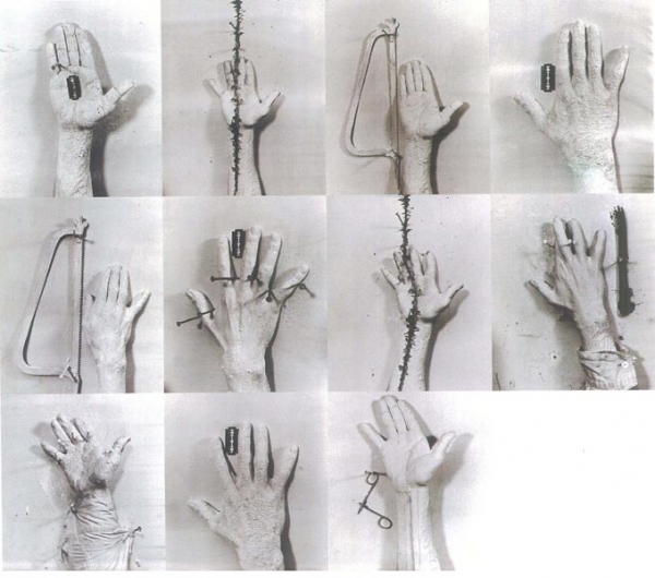 Hermann Nitsch's and Günter Brus's action painting starting in the early 1960s is a reaction to informal painting: instead of an abstract, "secularised" style of painting, their aim was to find concordance between art and life. Günter Brus's photographic cycle Aktion Selbstbemalung (Self-painting Action), 1964, is a symbiosis of performance and painting, an anticipation of Brus's tendencies towards radical physical actions carried to the extremes of self-injury as in Zerreissprobe (Endurance Test) of 1970. Hermann Nitsch's Schüttbilder ("Spilling Pictures") are sensuous, painterly elements of his spiritual and archaic Orgy Mystery Theatre.