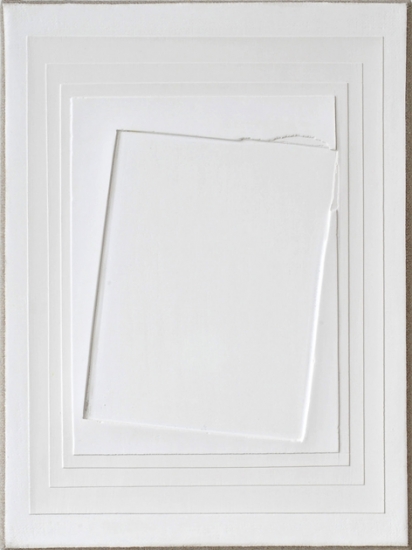 In some places she works specifically with small deviations and irritations against the even balance of the composition and the geometric precision – by means of fraying contours, scraped-off paint, or the positioning of a form at the picture edge. Thus a characteristic of Deininger’s painting is generated by the stimulus of a process-oriented approach applied directly into the picture and also manifesting itself on the level of a never-ending process of observation. The collage-type layering of individual areas of paint with different surface values produces the impression of a permeable pictorial space, in which both the coarse structure of the canvas and its grounding take effect as integral components of the composition, thus going beyond their function as pure substrate. »This creates spaces, not as a translation of our physical reality into painting, not by way of colours as a symbolic language, but as atmosphere – therefore they are actually not abstract pictures.« (Svenja Deininger)